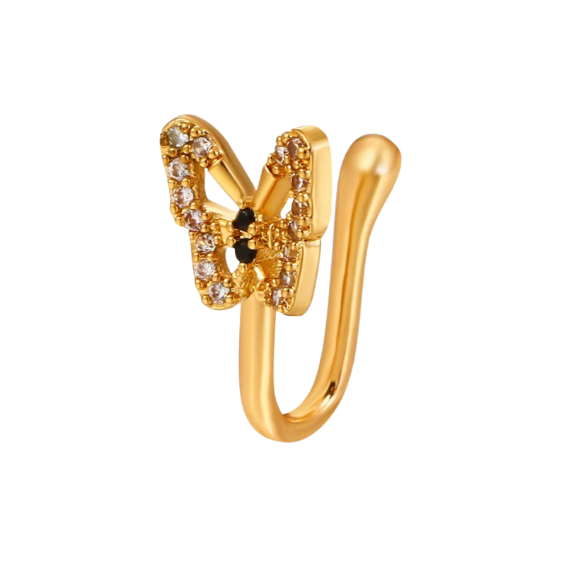 Ce faux piercing sera le compromis idéal si vous hésitez encore à vous faire percer par peur de laisser une cicatrice. En forme de U, il est orné d’un magnifique papillon aux couleurs argentées et noires.